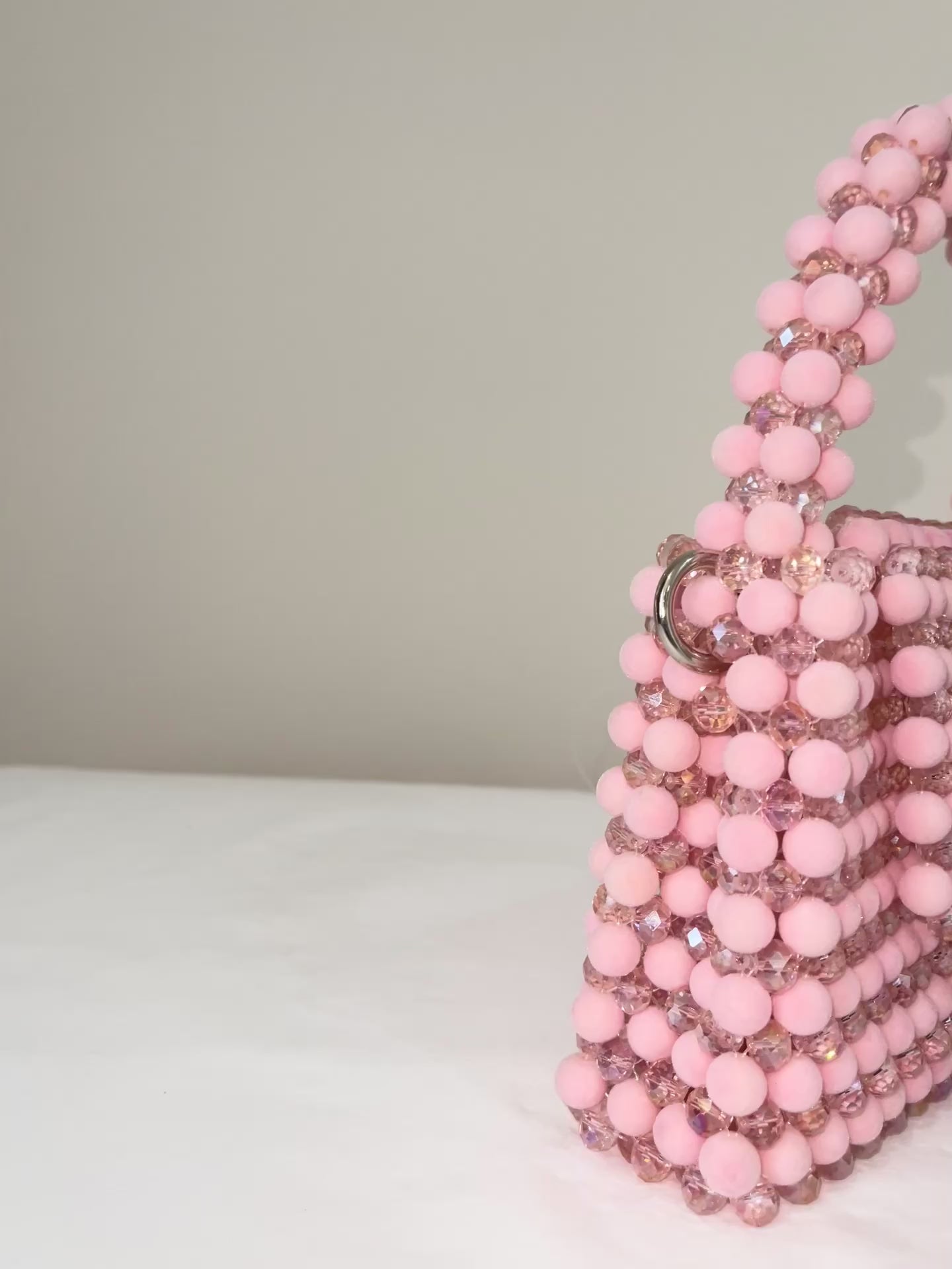 Elevate your style with this unique hand-beaded handbag, designed to turn heads at any occasion. Crafted with meticulous attention to detail, each bag features rows of soft, velvet-textured beads that create a luxurious and eye-catching finish.